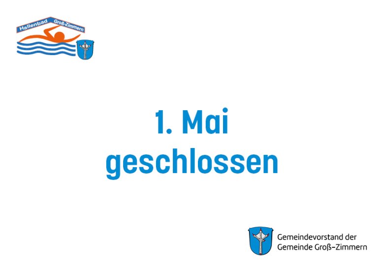 Mittwoch vor einem Feiertag: Unser Hallenbad schließt bereits um 18 Uhr, wenn der darauffolgende Donnerstag ein Feiertag ist.