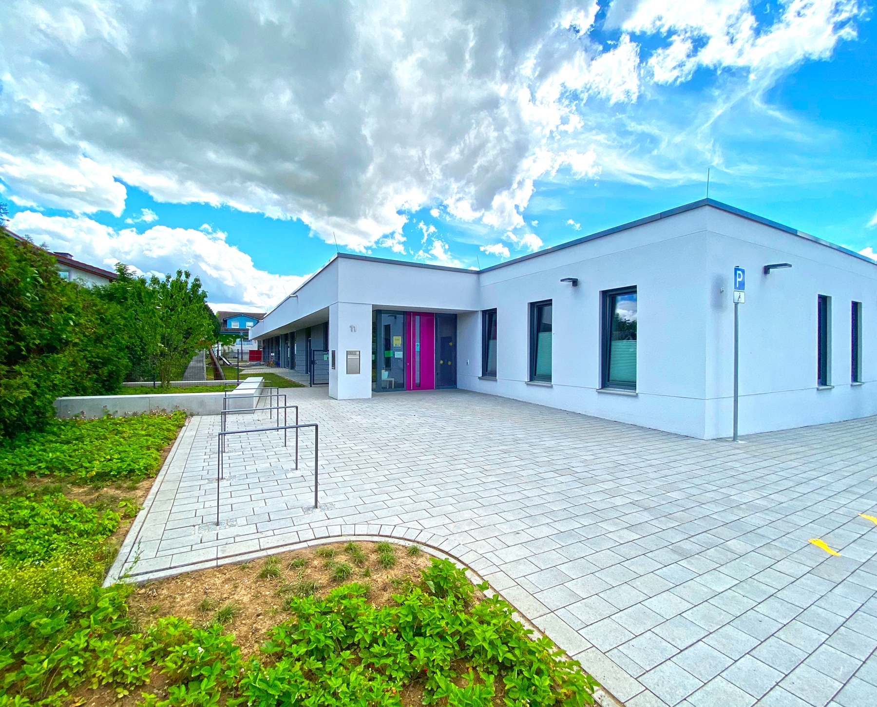 Die KiTa befindet sich in einem Wohngebiet. Unweit der Einrichtung liegen die alt verwurzelte Kita „Blumenstraße“, ein kleiner Spielplatz, eine Kirche und viele Felder und Wiesen, welche mit den Kindern schnell und gut zu erreichen sind.