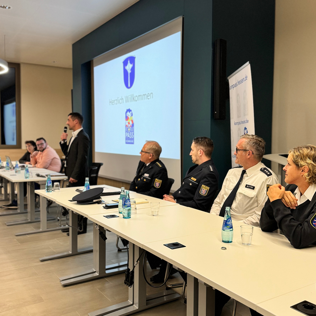 KOMPASS ist ein Angebot des Hessischen Innenministeriums an die hessischen Städte und Gemeinden. Ziel des Programms ist es, die Sicherheitsarchitektur in den Kommunen individuell weiterzuentwickeln.