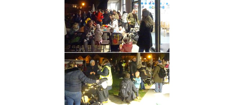Mit einem hellerleuchtetem Martinsfeuer empfingen Mitarbeitende der KITA Semder Pfad alle Umzugsteilnehmenden im Garten der KITA. Hier wurden zum gemütlichen Abschluss traditionelle Hefebrezeln, Würstchen, Kinderpunsch und für die Erwachsenen Glühwein angeboten.