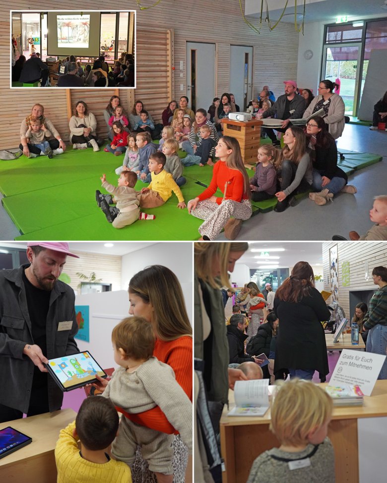 Den Besuchern standen zahlreiche Ansichtsexemplare aus den Bereichen Bilderbuch, Vorlesebuch und Wimmelbuch zur Verfügung. Viele nutzten direkt die Gelegenheit, gemeinsam zu lesen und neue Titel kennenzulernen. Die KiTa-Mitarbeitenden gaben individuelle Buchempfehlungen und informierten zudem über Apps, die den Spracherwerb und die Freude am Lesen sinnvoll unterstützen können. Ergänzend visualisierten Plakate anschaulich die vielfältigen Vorteile des Lesens.